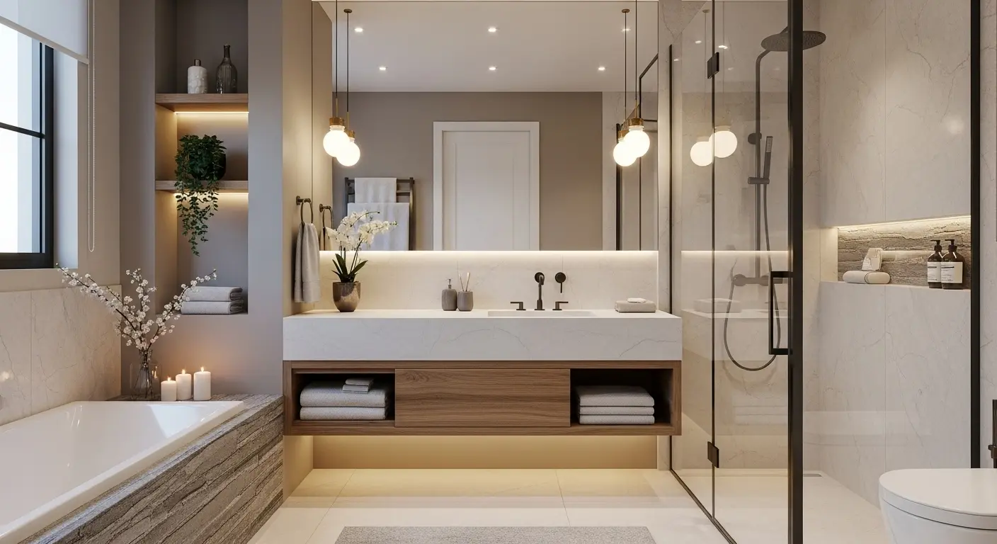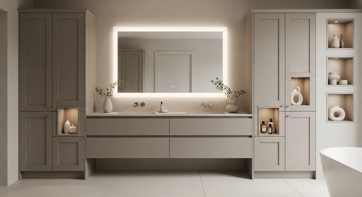 Casas de banho pequenas ou grandes ganham amplitude e sofisticação com nosso design sob medida. O projeto INOVARE é pensado para aproveitar cada centímetro com inteligência e elegância. Entregamos móveis com acabamento premium, resistência técnica e estética refinada. Cada detalhe é planejado para trazer praticidade, amplitude visual e sofisticação atemporal.