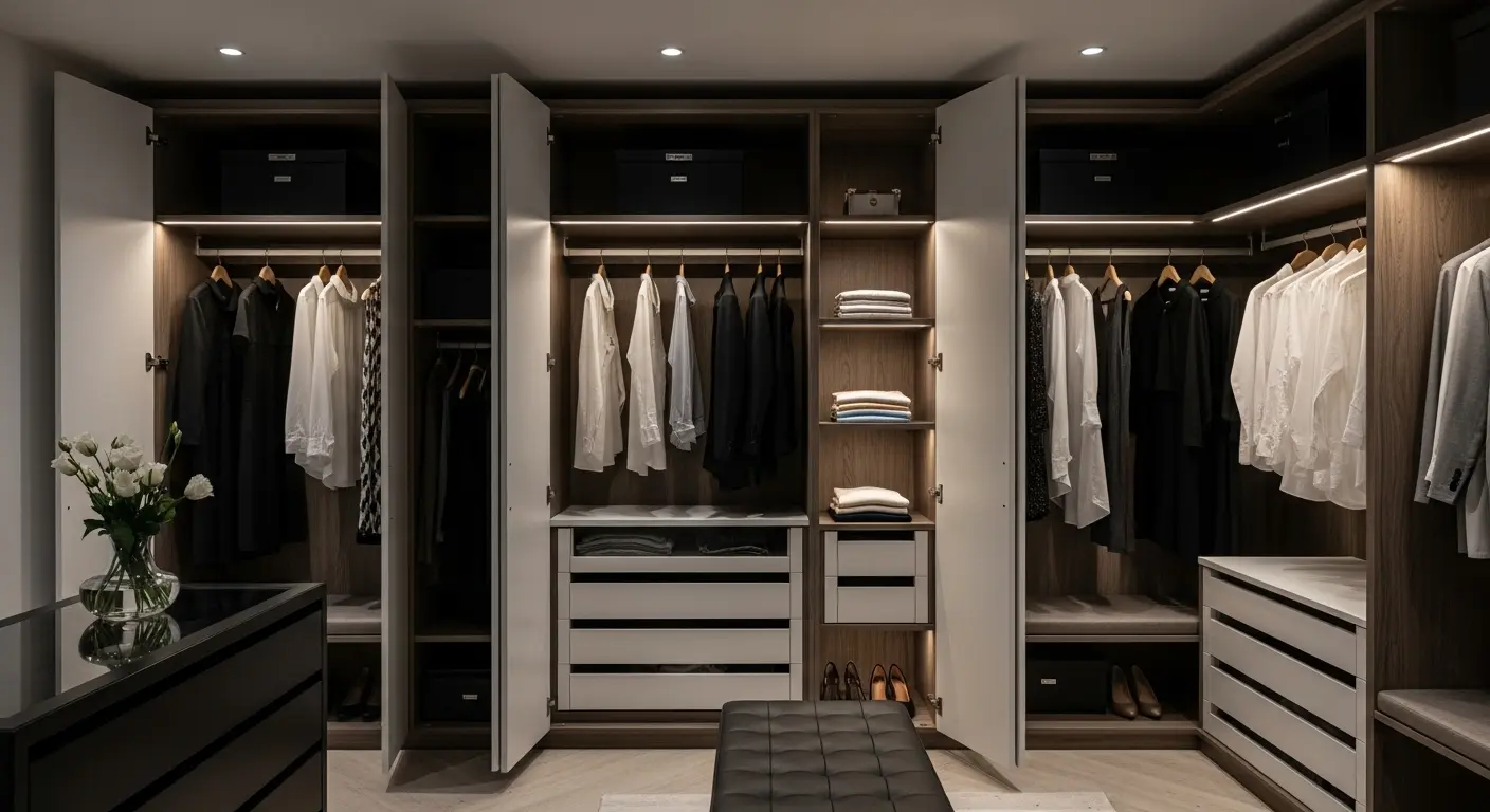 Um roupeiro sob medida muda tudo: organiza, facilita a rotina e traz leveza ao dia. Criamos soluções personalizadas com iluminação adequada, compartimentos inteligentes e acabamento impecável.