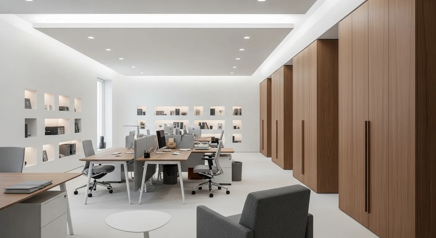 Produtividade e beleza podem e devem caminhar juntas. Criamos escritórios personalizados com design ergonômico, painéis, nichos e mesas sob medida para facilitar o seu fluxo de trabalho. Soluções que equilibram sofisticação e funcionalidade, para transformar o seu dia a dia num ambiente inspirador.