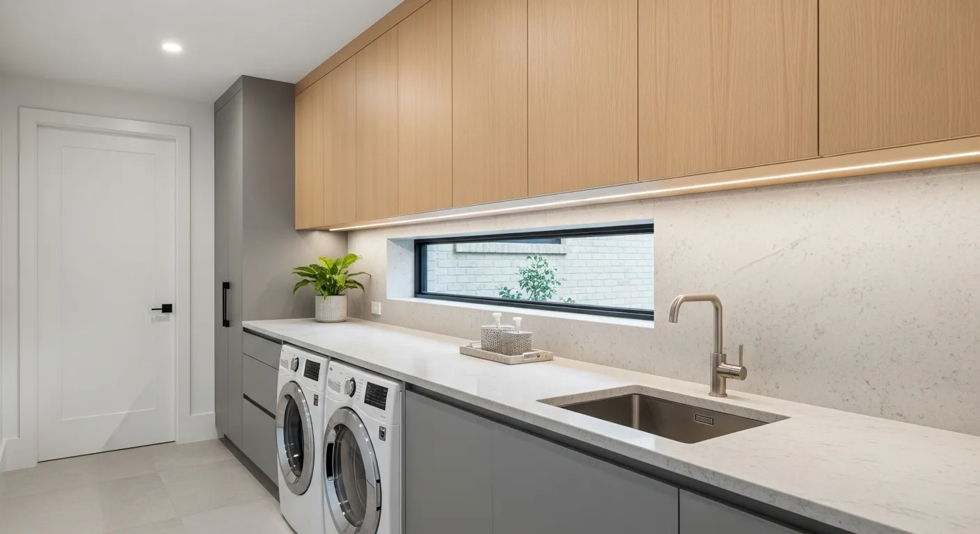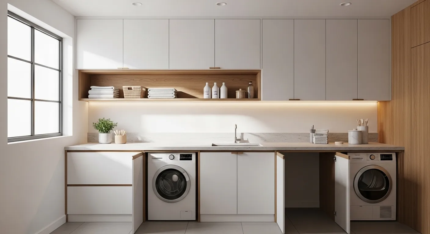 A sua lavandaria pode ser funcional e elegante ao mesmo tempo.
